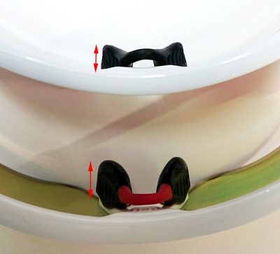 赤い鼻当ての方が改造してあります。比較していただと、高さが違うことが分かると思います。